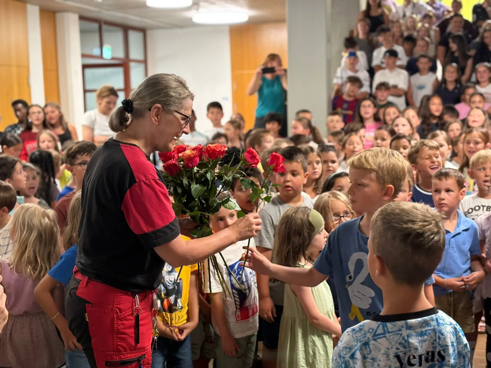 19 Jahre lang war sie das Herz und die Seele unserer Schuleinheit. Weit über ihre Rolle als Hauswartin hinaus war sie Hausmutter, Zuhörerin, Ansprechpartnerin, Vermittlerin, Organisatorin, Trösterin und Möglichmacherin – immer präsent, wenn sie jemand brauchte.