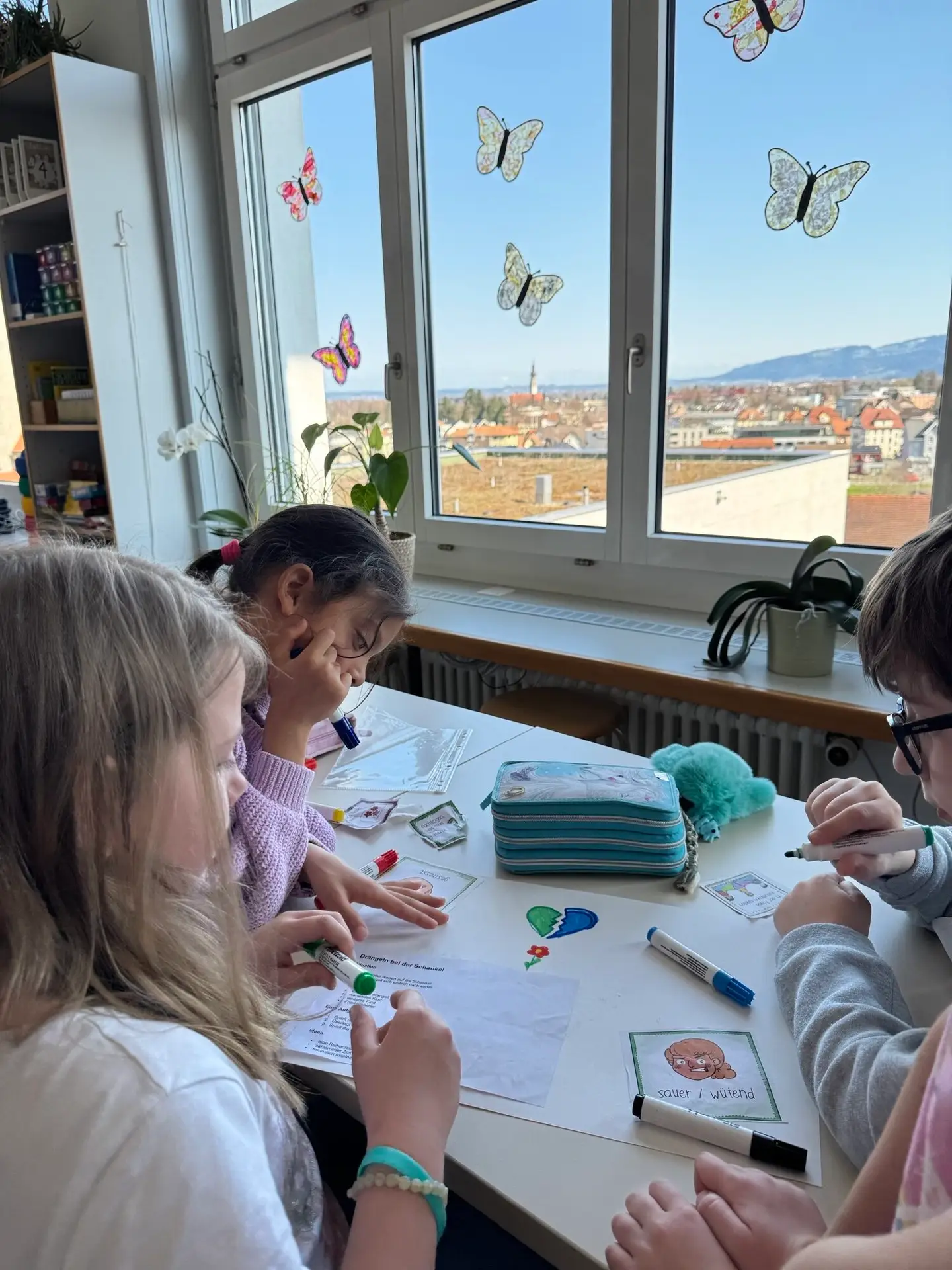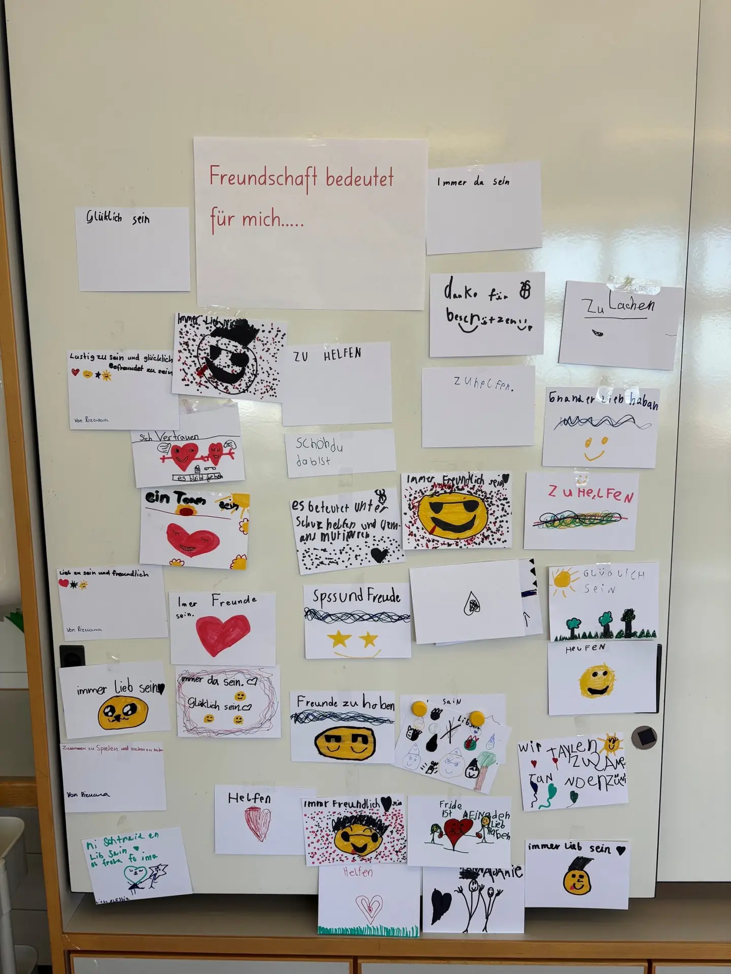 In den vielfältigen Ateliers setzten sich die Kinder am Montag und von Mittwoch bis Freitag auf kreative Weise mit dem Thema Frieden auseinander. Die Ateliers waren abwechslungsreich gestaltet und boten den Kindern vielfältige Zugänge zum Thema Frieden und Freundschaft. Von Bewegungsaktivitäten über das Knüpfen von Freundschaftsbändern bis hin zum kreativen Gestalten von Herzen auf dem Schulgelände und vielem mehr wurde für grosse Vielfalt gesorgt. So konnten die Kinder auf unterschiedliche Weise aktiv werden, ihre Stärken einbringen und das Thema mit allen Sinnen erleben.