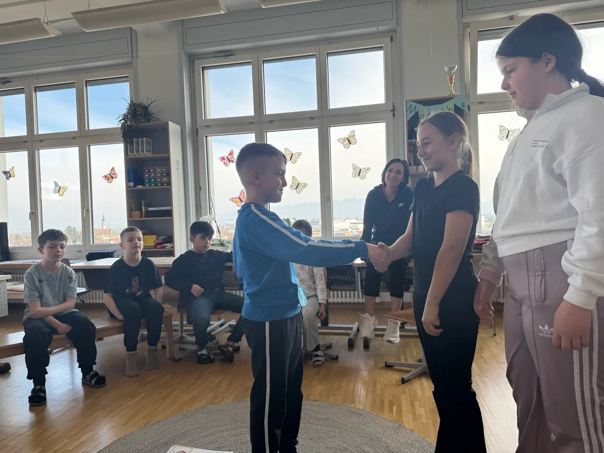 In der Friedenswoche wurden auch in jeder Klasse Peacemaker ausgebildet. Sie lernten, Streitigkeiten konstruktiv zu schlichten, aufmerksam zuzuhören, Gefühle wahrzunehmen und gemeinsam mit den Beteiligten faire Lösungen zu finden. Dabei stärkten sie wichtige soziale Kompetenzen und übernahmen Verantwortung für ein friedliches Miteinander im Schulalltag. Am Freitag wurden sie im Rahmen der Abschlussfeier feierlich diplomiert.
