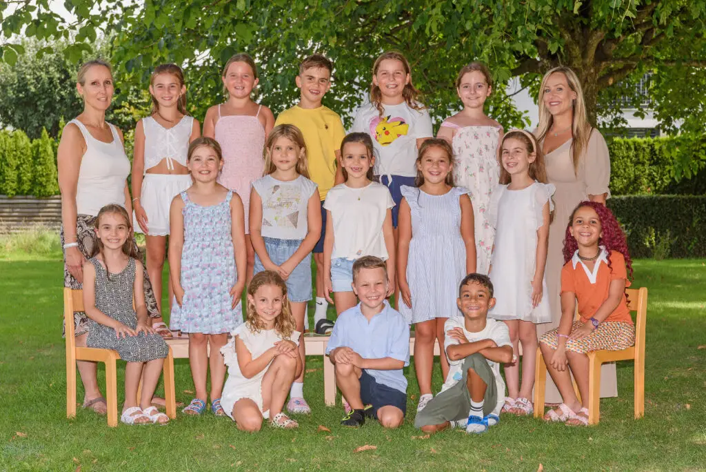 Klassenfoto mit Klassenlehrperson Roberta Di Gennaro (rechts) und Susanne Hendry